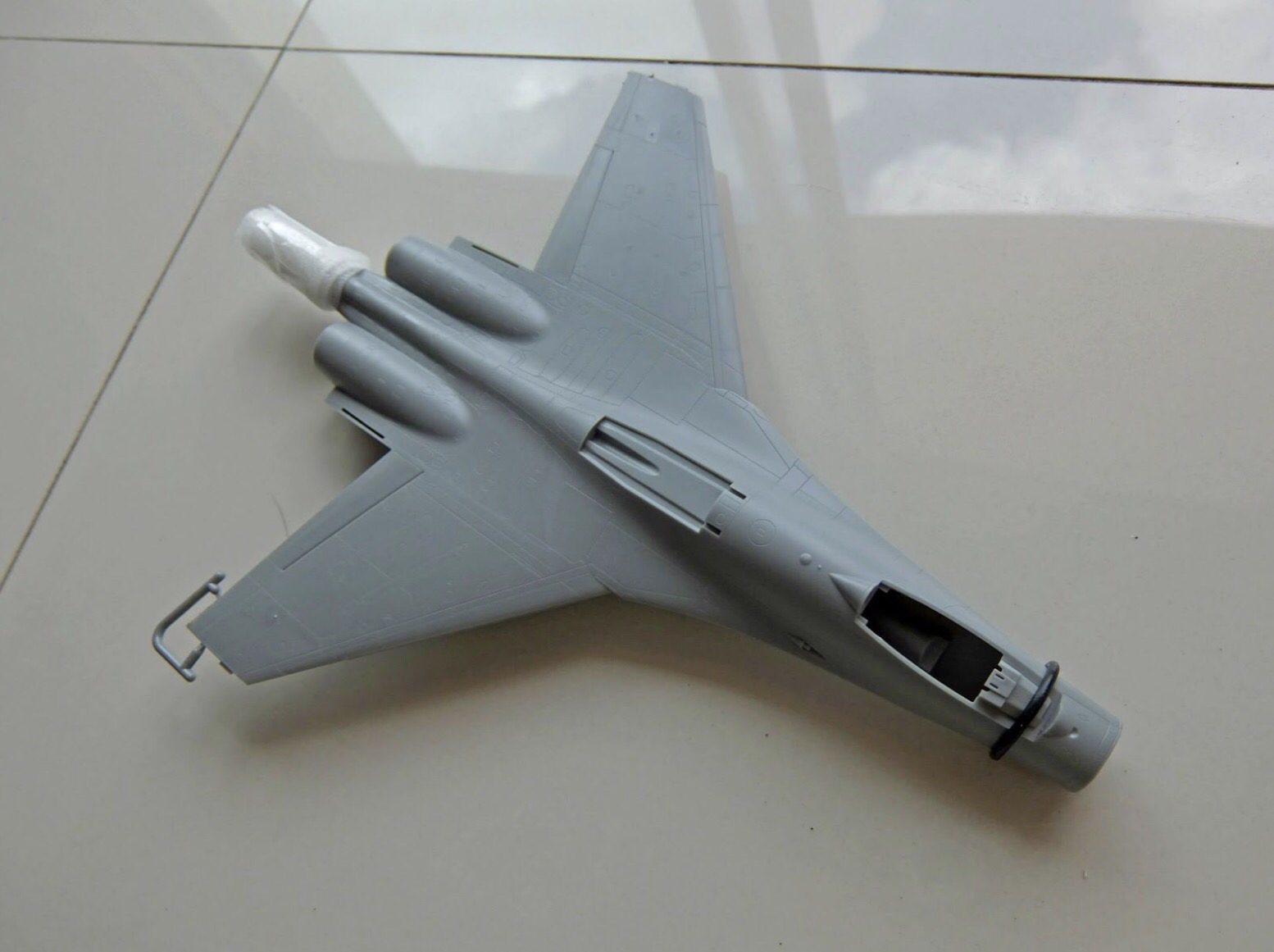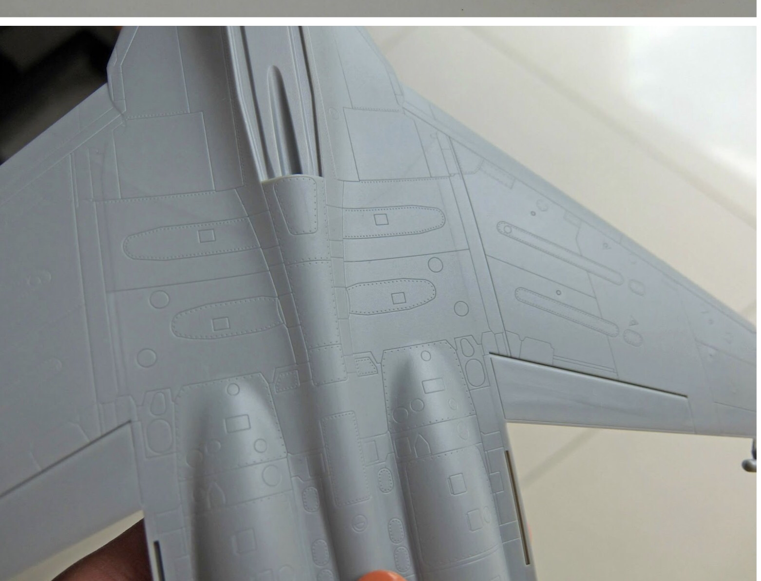 The detail on the fuselage is very pleasant, and the recessed panel lines are very accurate. However, I think they exaggerated a bit on the rivet count and the deepness of the panel lines for this scale (but I will probably fix itself once the paint is applied).
