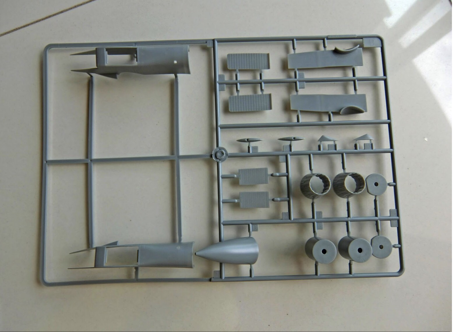 The ‘B’ sprue has the main intakes and exhaust pieces, as well as the nose radome and some antennae.