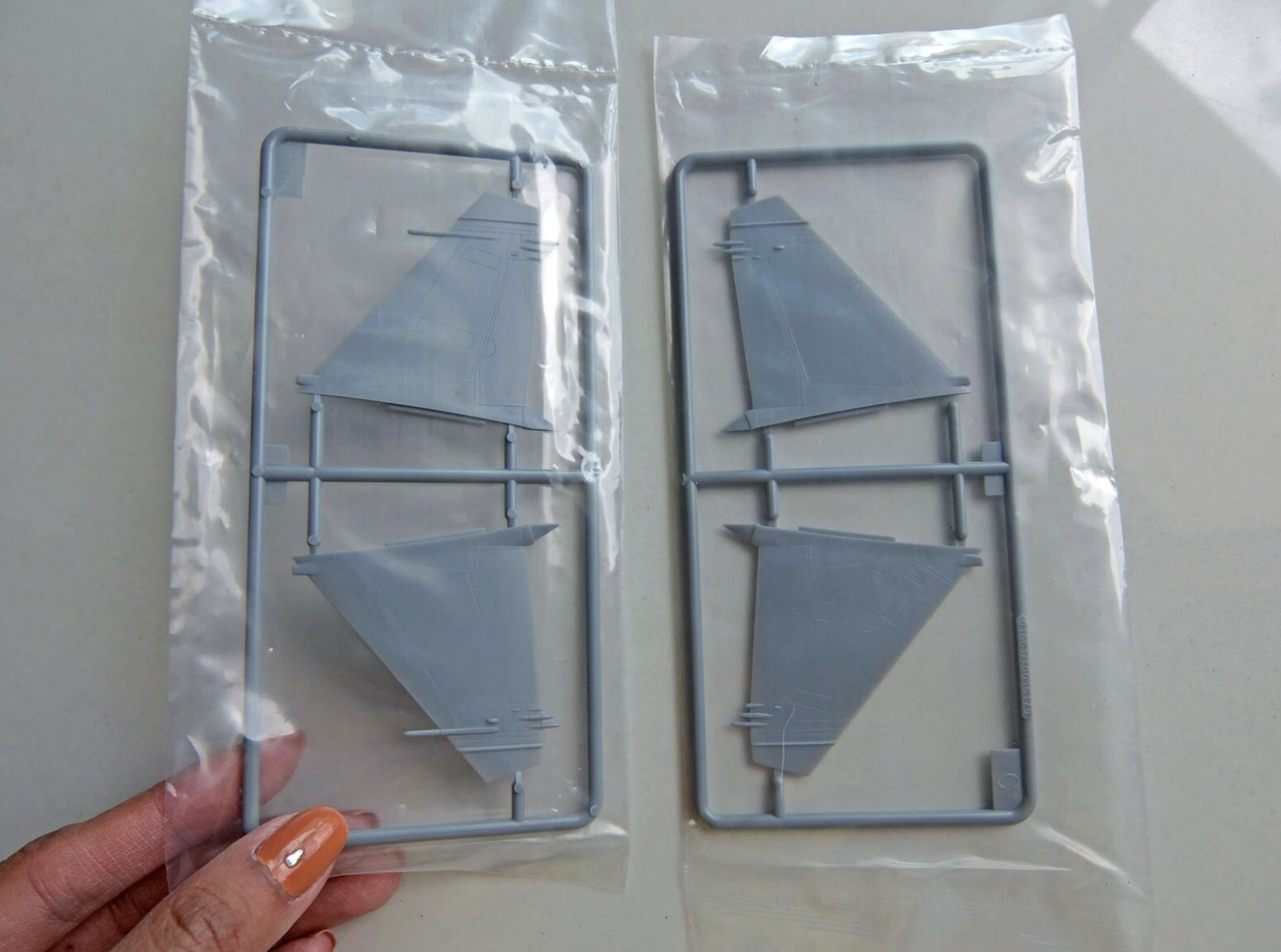 The kit comes with two sets of vertical stabilizers. The fins for the early version are the left ones, which had “anti-flutter” counterweights at the front (only seen in the very first production models), but if you feel like building a more modern version you can use the ones on the right.