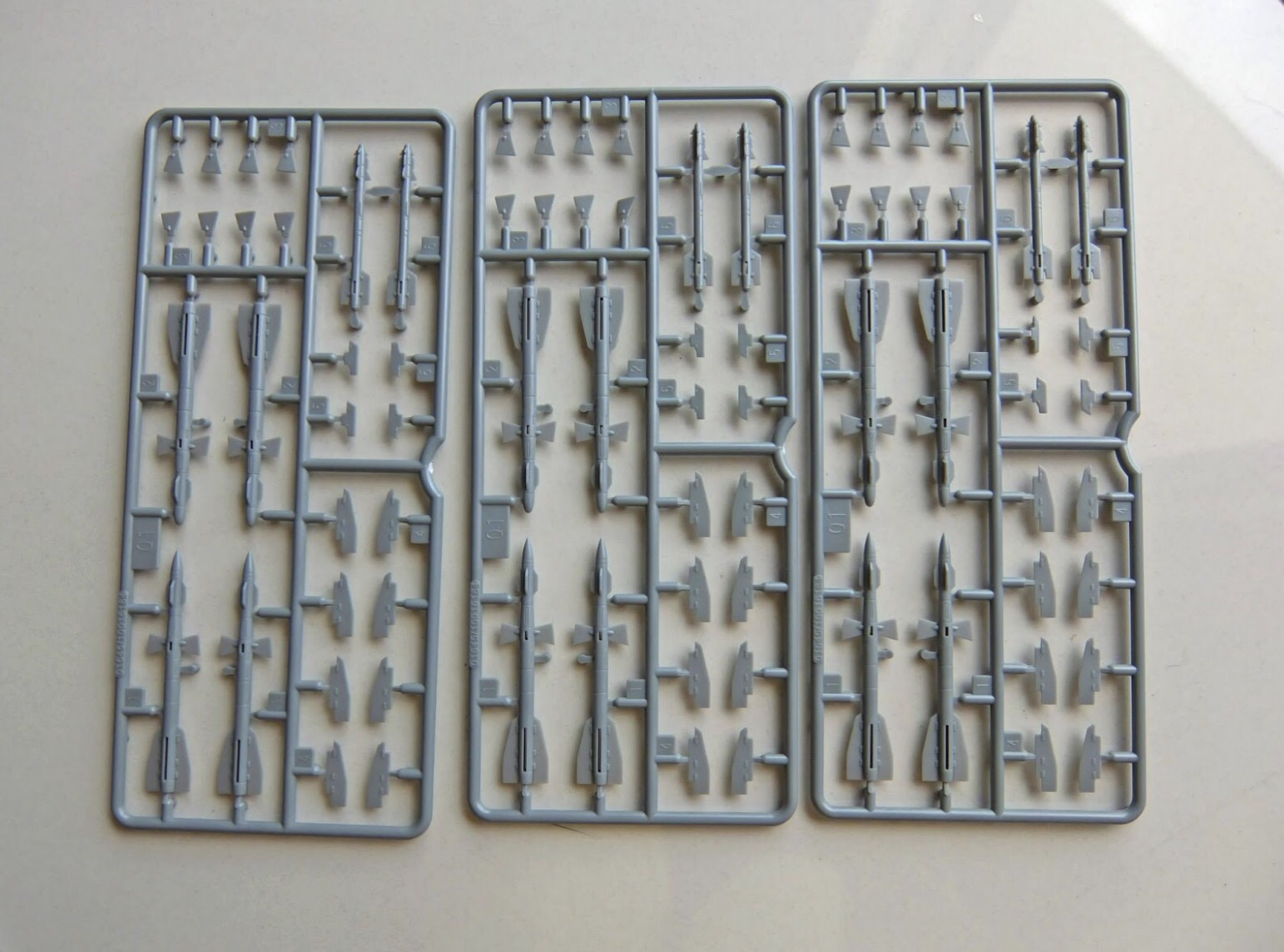 Trumpeter packed three sprues of ordnance, which include two versions of R-27 missiles (12 in total) and six R-73 short range missiles; more than enough to arm your SU-27 to the teeth!